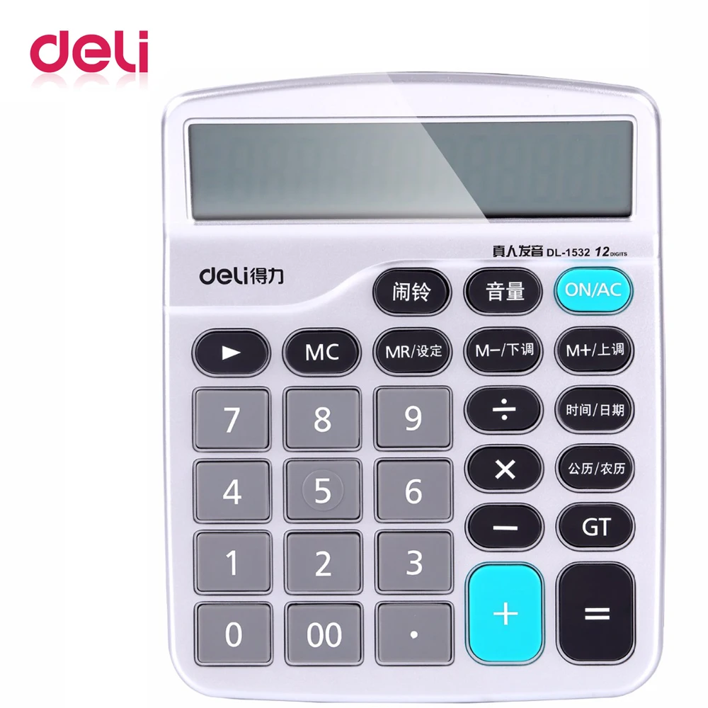 معرض ل ديلي 1 قطعة حاسبة صوت حقيقي 12 أرقام مكتب التجاري نوع كبير LCD شاشة حاسبة مع إنذار التقويم 1532