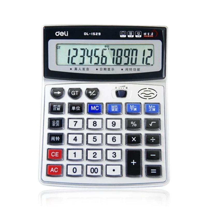 وانت porأرغب في شراء Calculators, luego 1 قطعة أصيلة ديلي 1529 الكريستال زر كبير صوت الكمبيوتر حاسبة 12 أرقام شاشة كبيرة مع ساعة es posible hacer please
