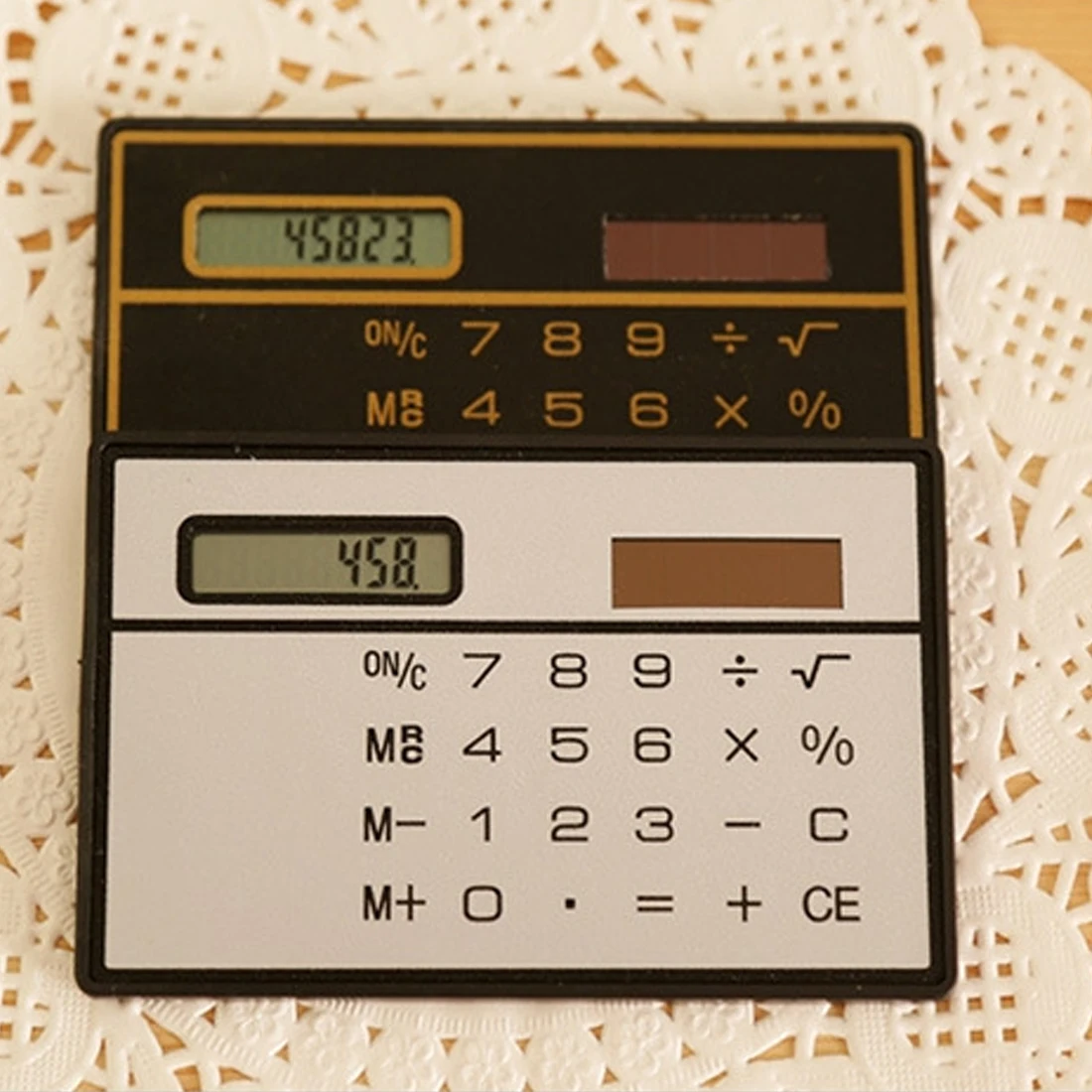 شراءمعلومات اضافية مصغرة الشمسية حاسبة صغيرة ضئيلة رجل امرأة هدايا وظيفة بطاقة الائتمان حاسبة الجيب اللون عشوائي